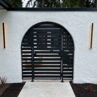 We will collaborate with you to integrate your existing fencing and property architecture or design custom iron railings to fully secure your property. All our pedestrian or walk-thru gates come with sealed hinges as well as many options to choose from.